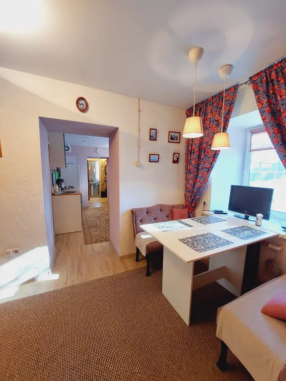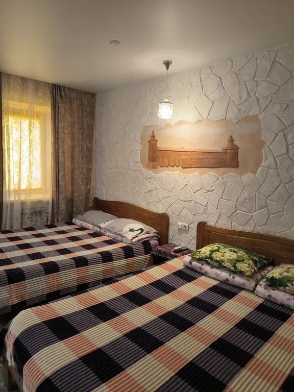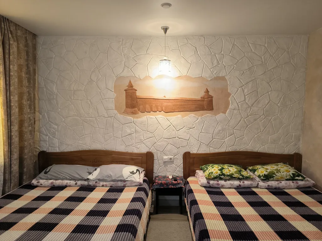 2 двуспальные кровати, 1 диван на 2 места, утюг, телевизор, жк-телевизор, обогреватель, гладильная доска, москитные сетки на окнах, кабельное ТВ, интернет Wi-Fi.