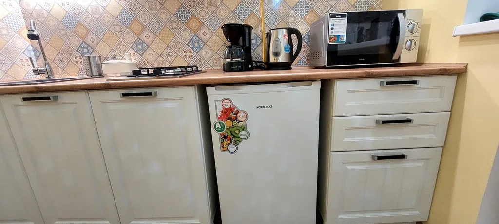 варочная поверхность, кофеварка, СВЧ-печь, холодильник,электрочайник, кондиционер;