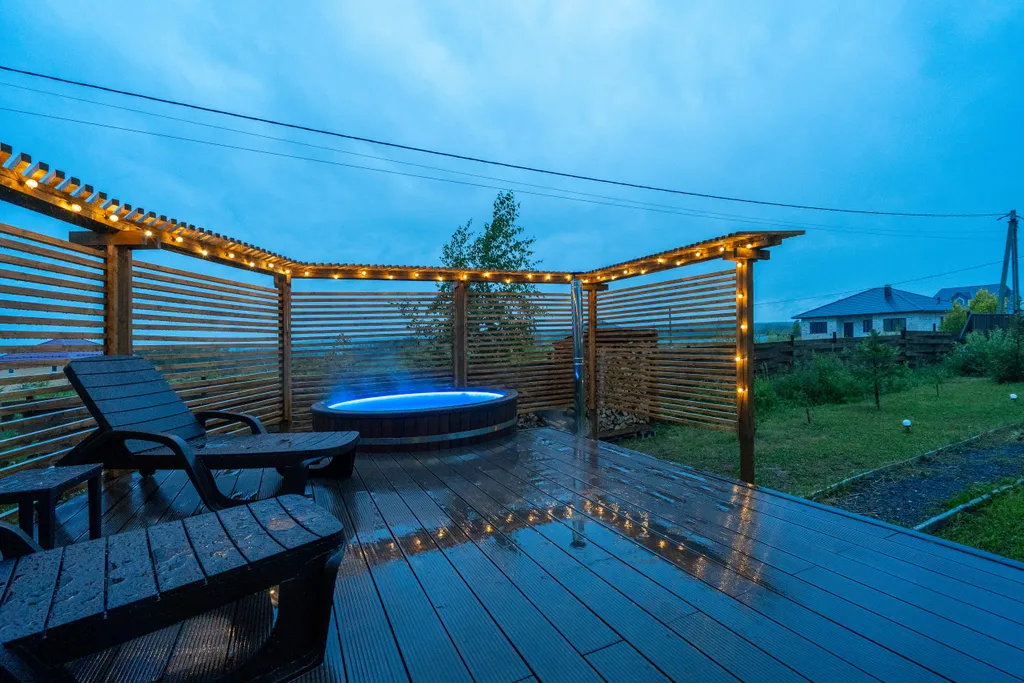 Идеально подойдёт для совмещения загородного отдыха с прогулками по Коломне и её достопримечательностям. После насыщенного дня вы сможете попариться в настоящей русской бане на дровах, а затем погрузиться в горячую купель с подсветкой.