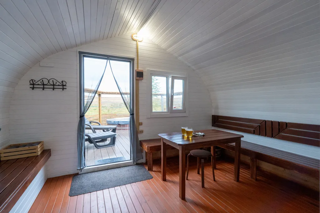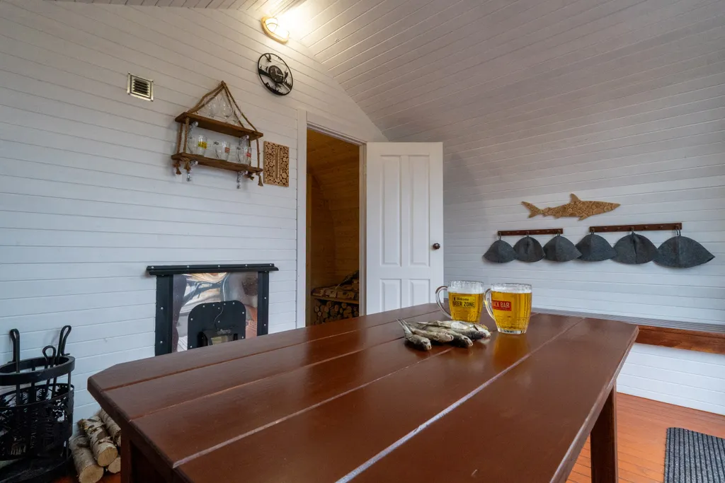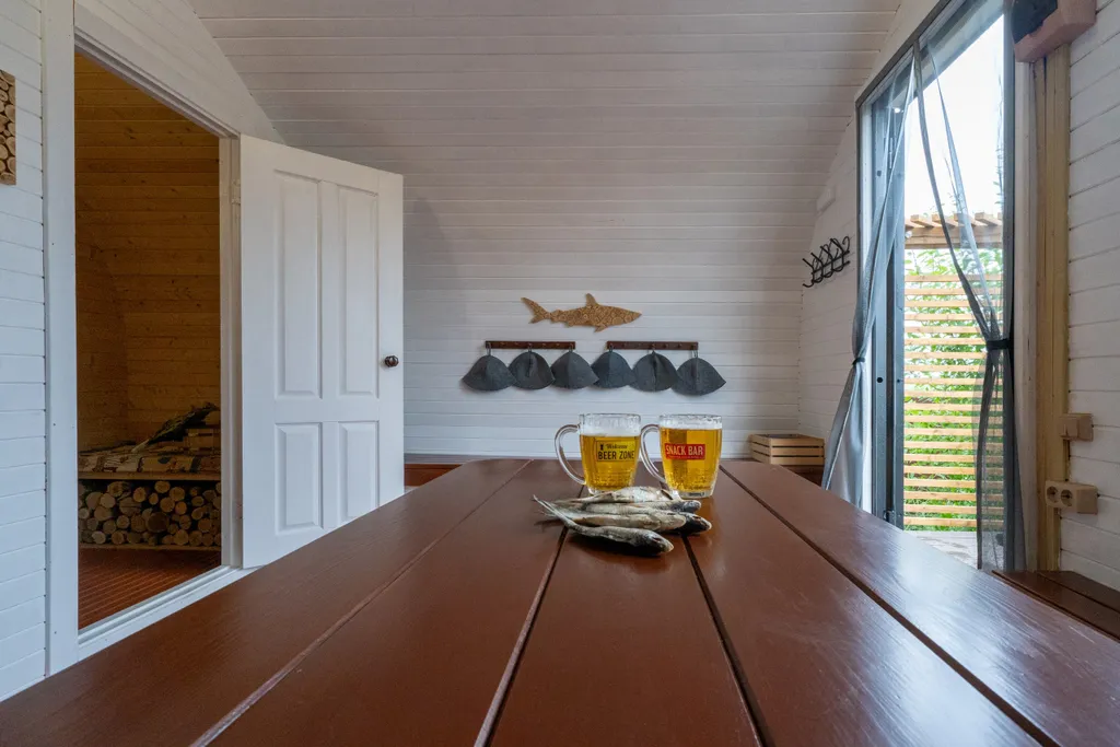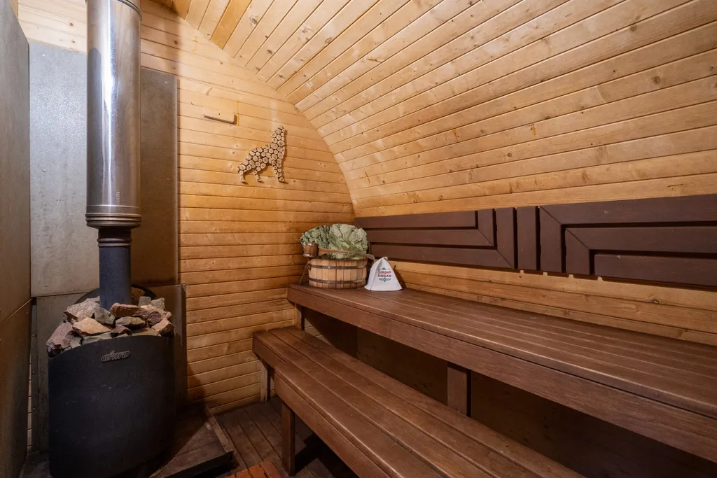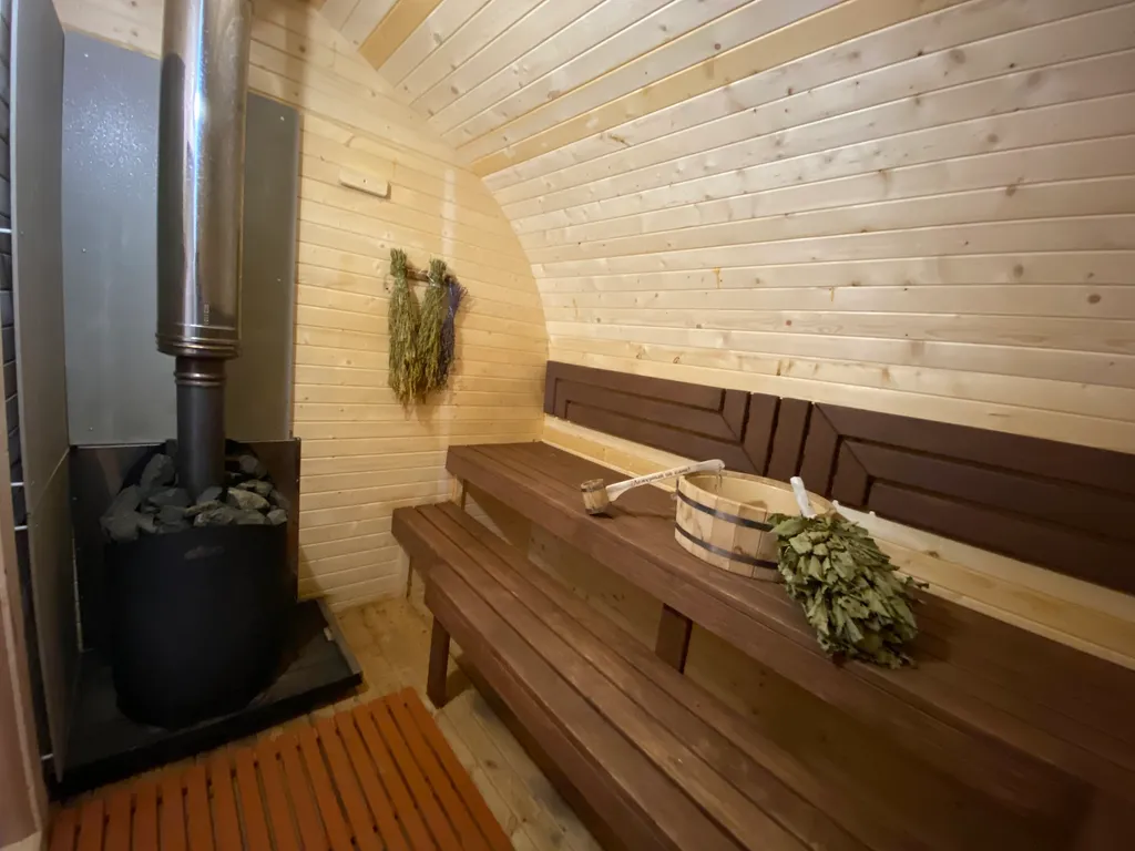 Здесь легко расслабиться и восстановить силы. Русская баня на дровах дарит тепло и бодрость, а купель под открытым небом добавляет особый контраст и атмосферу.