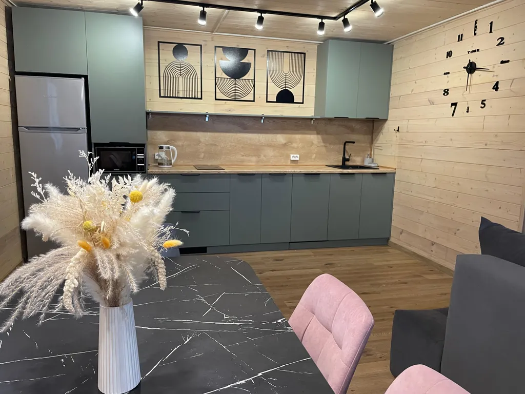 — Полностью оборудованная кухня (плита, холодильник, микроволновка, чайник, посуда)