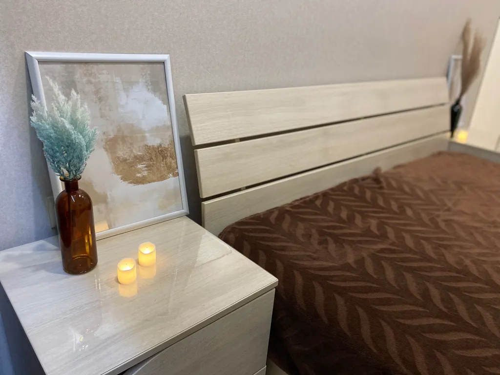 В квартире есть всё необходимое для комфортного проживания: полностью укомплектованная посудой и техникой кухня, стиральная машинка, утюг, гладильная доска, электрический чайник, микроволновка, сушилка, фен, постельное белье, полотенца.